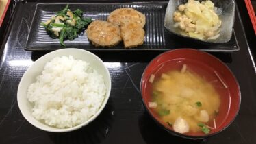 本日のお食事 11/11(火)のお昼ごはん⭕️レンコンのはさみ焼き😋 ⚫︎レンコンのはさみ焼き ⚫︎キャベツと薄揚げと天かすの煮浸し ⚫︎ほうれん草とちくわの和え物 ⚫︎みそ汁 2025.11.11 本日のお食事