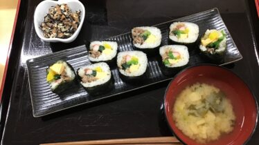 ⚫︎キンパ巻き(韓国の海苔巻き) ⚫︎ひじきと豆腐の炒め物 ⚫︎みそ汁
