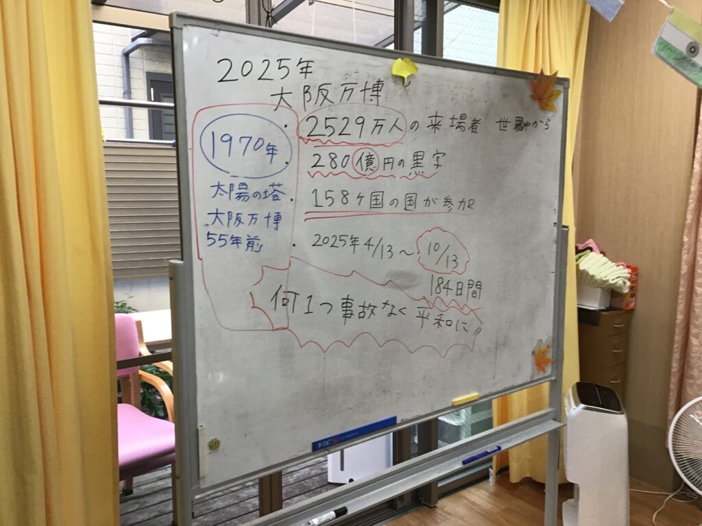 そして本日の朝レクリエーション時には昨日の大阪万博閉会式の中継を見た利用者様のお話で