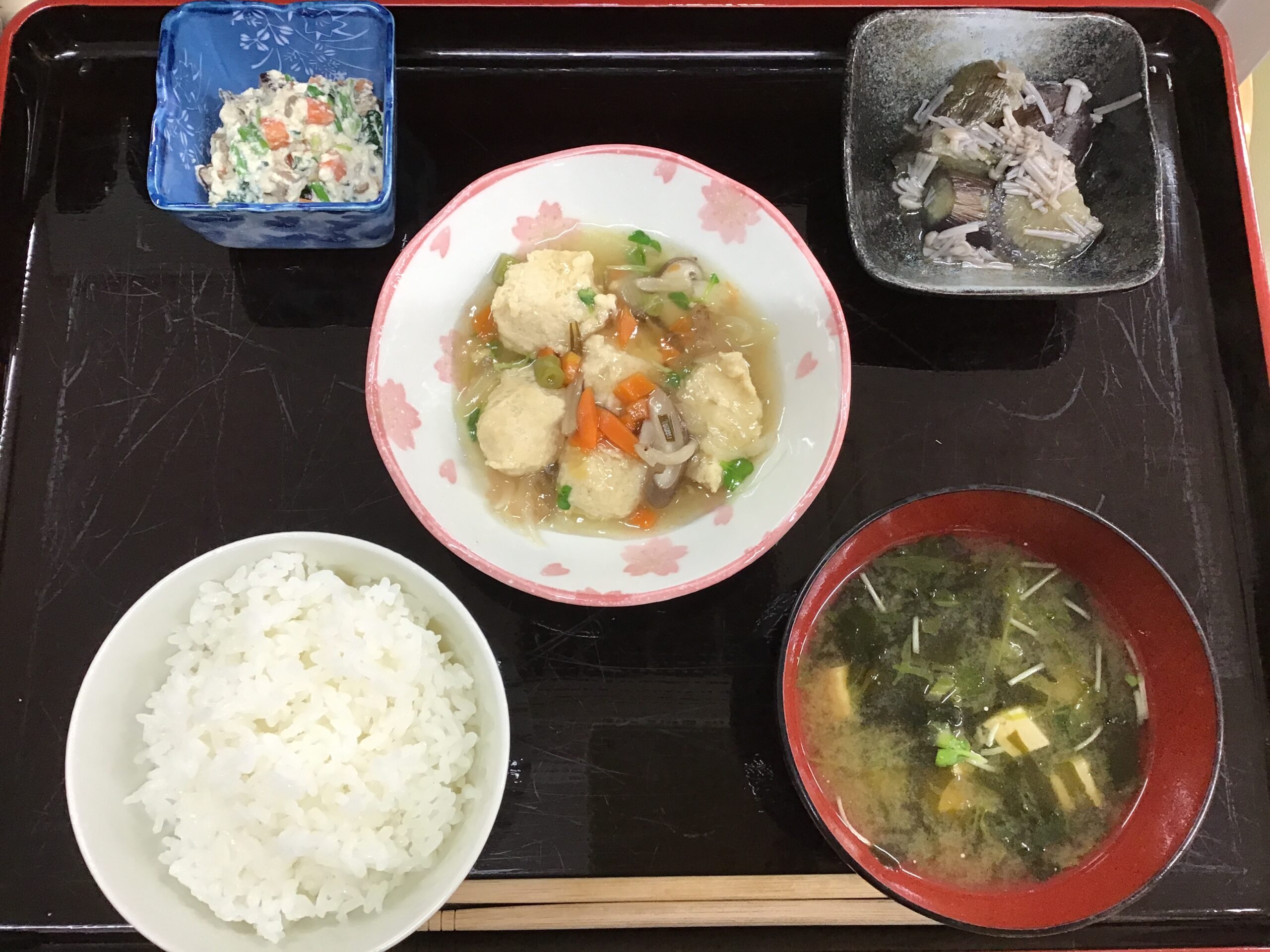 10/29(水)のお昼ごはん🐓鶏団子のあんかけ🍆