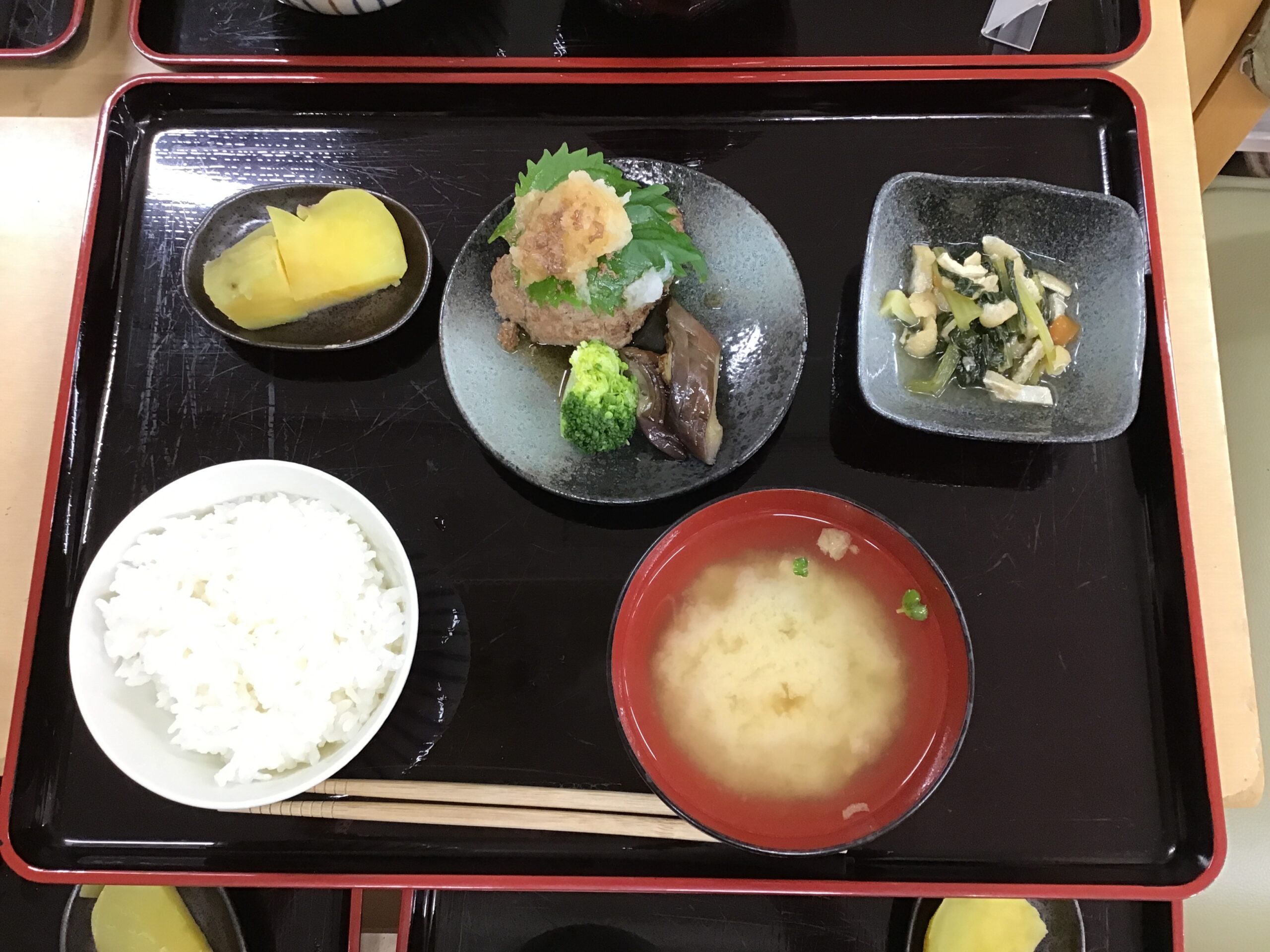 10/30(木)のお昼ごはん🐮おろしそハンバーグ🍠