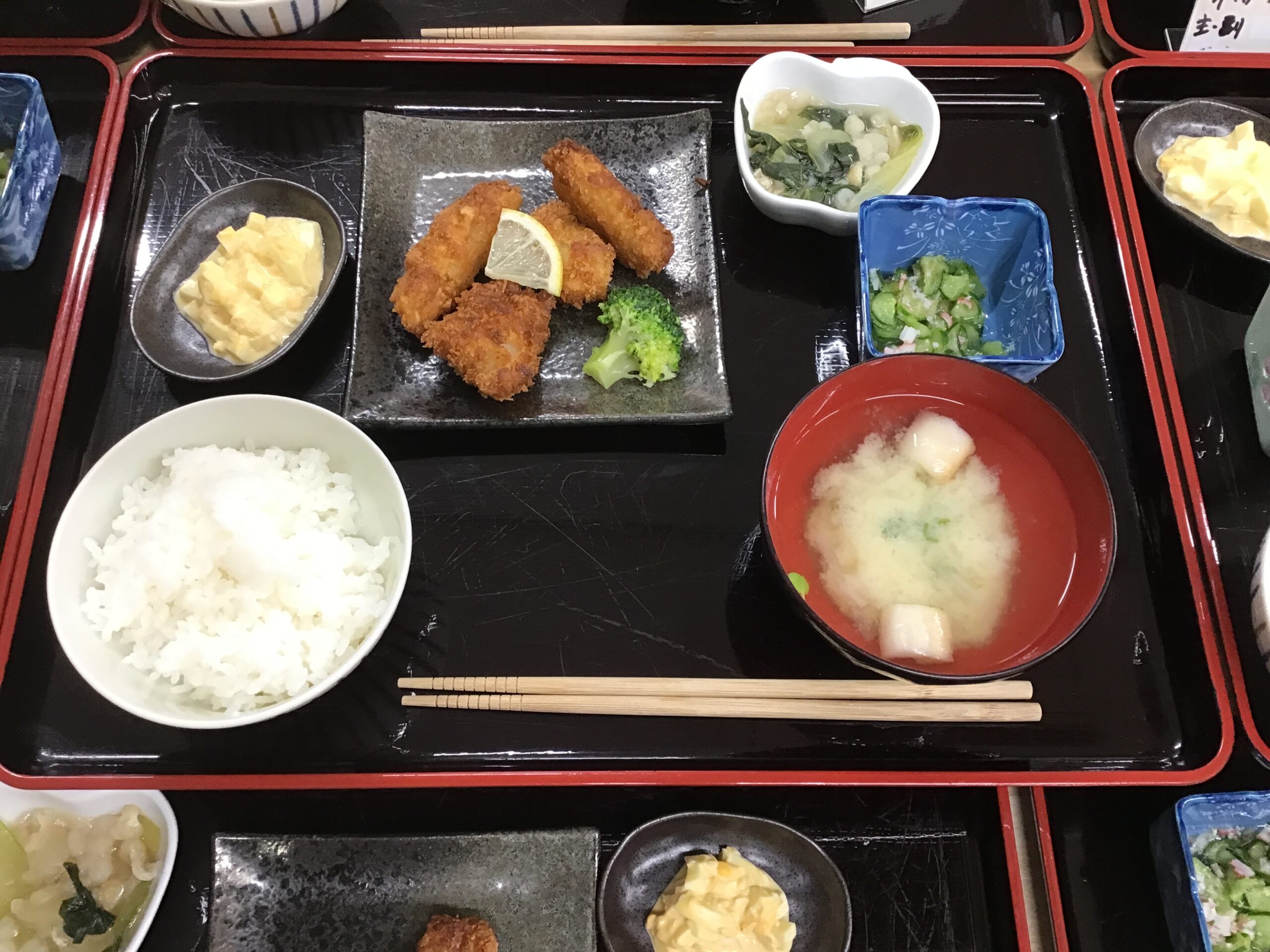 12/2(火)のお昼ごはん🐟白身魚のフライタルタルソース添え🍳 本日のお食事 2025.12.02 ⚫︎白身魚のフライタルタルソース添え ⚫︎青梗菜と天かすと薄揚げの煮物 ⚫︎きゅうりとカニカマの酢の物 ⚫︎お味噌汁