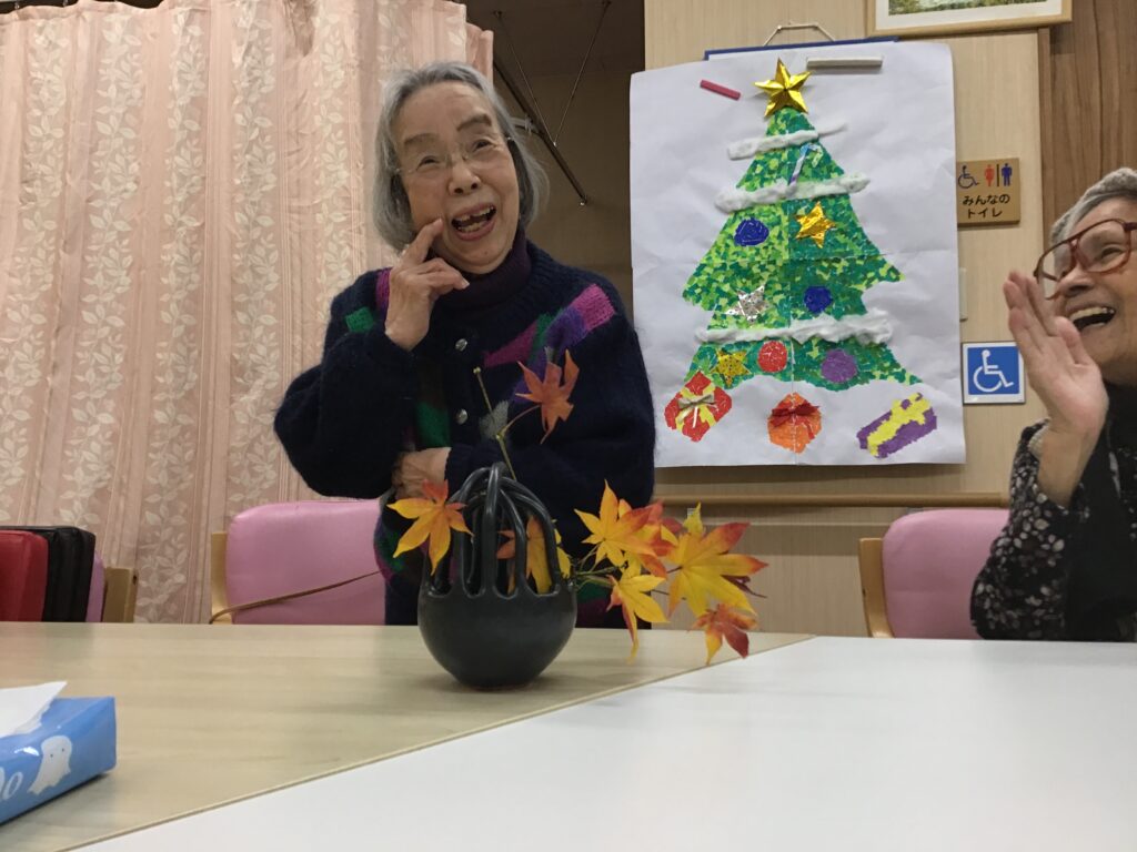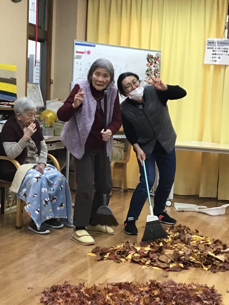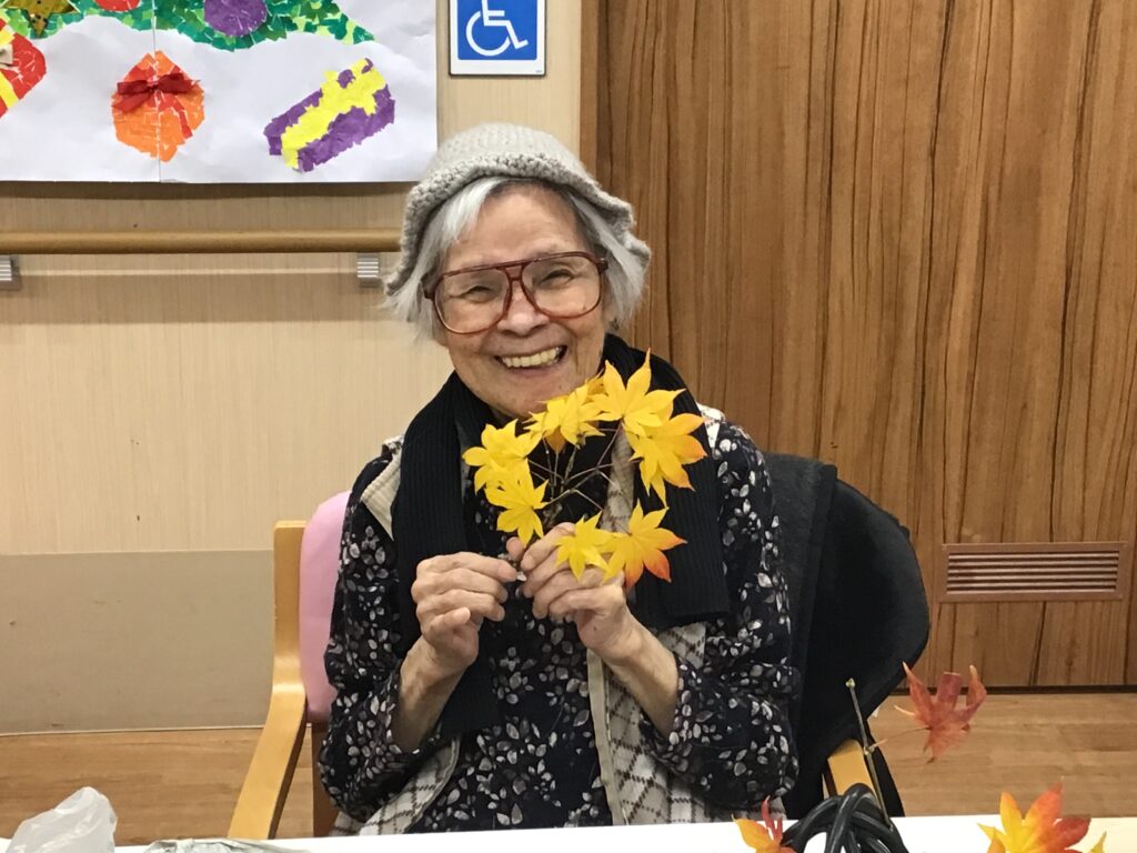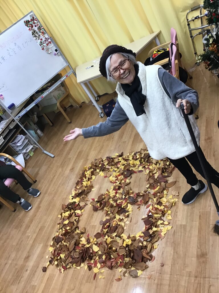 本日のレクリエーションは、奈良、四天王寺、御堂筋の落ち葉を集めて床一面で落ち葉アートに挑戦💪