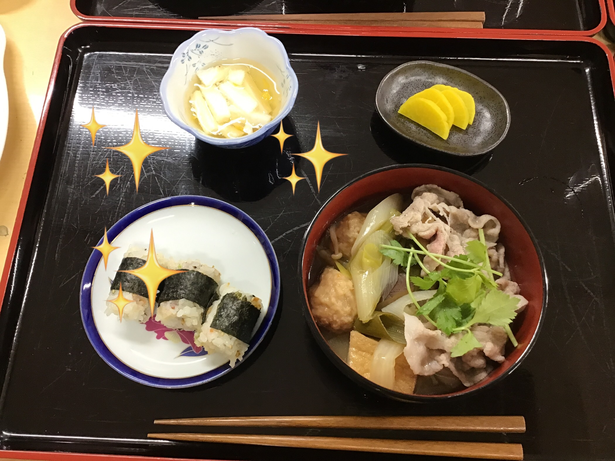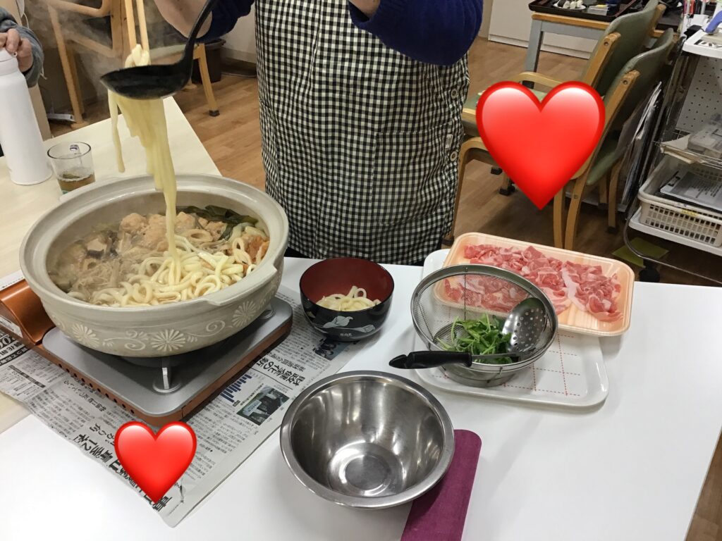 2/11㊗️(水)のお昼ごはん🍲寄せ鍋☺️ イベント 2026.02.11 本日の昼食は具沢山の寄せ鍋(うどん入り)でした〜♨️ 今日は祝日のため、欠席の方も多く少人数の利用者様でしたが、みんなでお鍋を囲みホカホカ笑顔😁 一人暮らしの方も多いので 「こんなん久々❗️皆んなでお鍋食べられて嬉しい❣️美味しいわぁ〜💓😋」 と話も弾みます♬🎶 全員お代わりもして体もポカポカ♨️ ランチを注文したスタッフも同じフロアーで美味しく頂きました〜😋