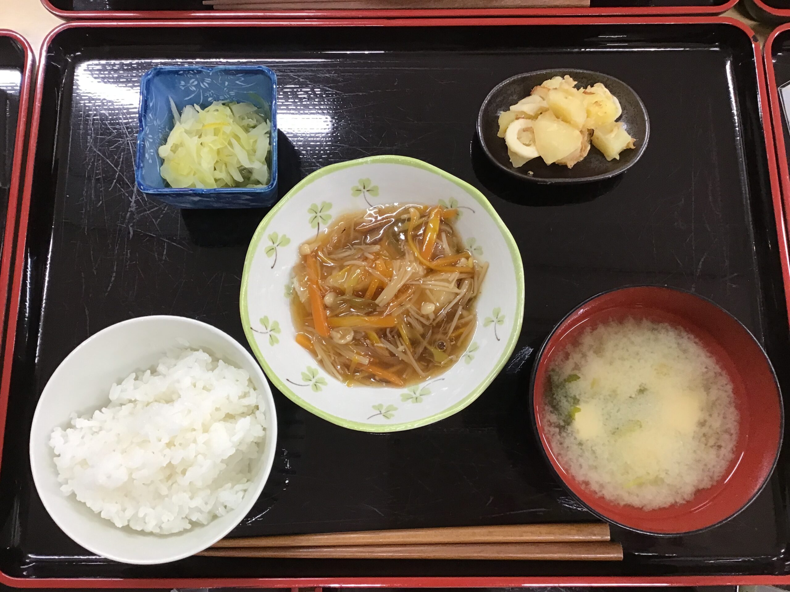 2/13(金)のお昼ごはん🐟白身魚の甘酢あんかけ🍄🟫