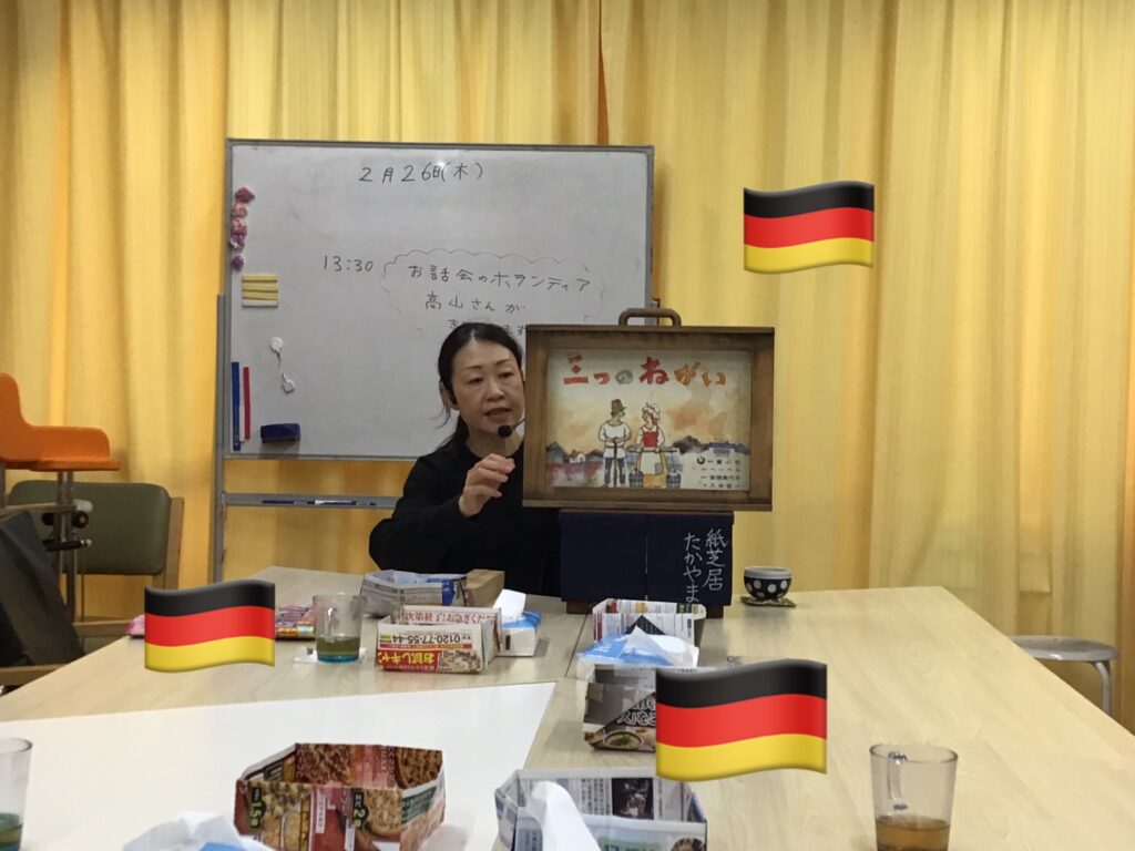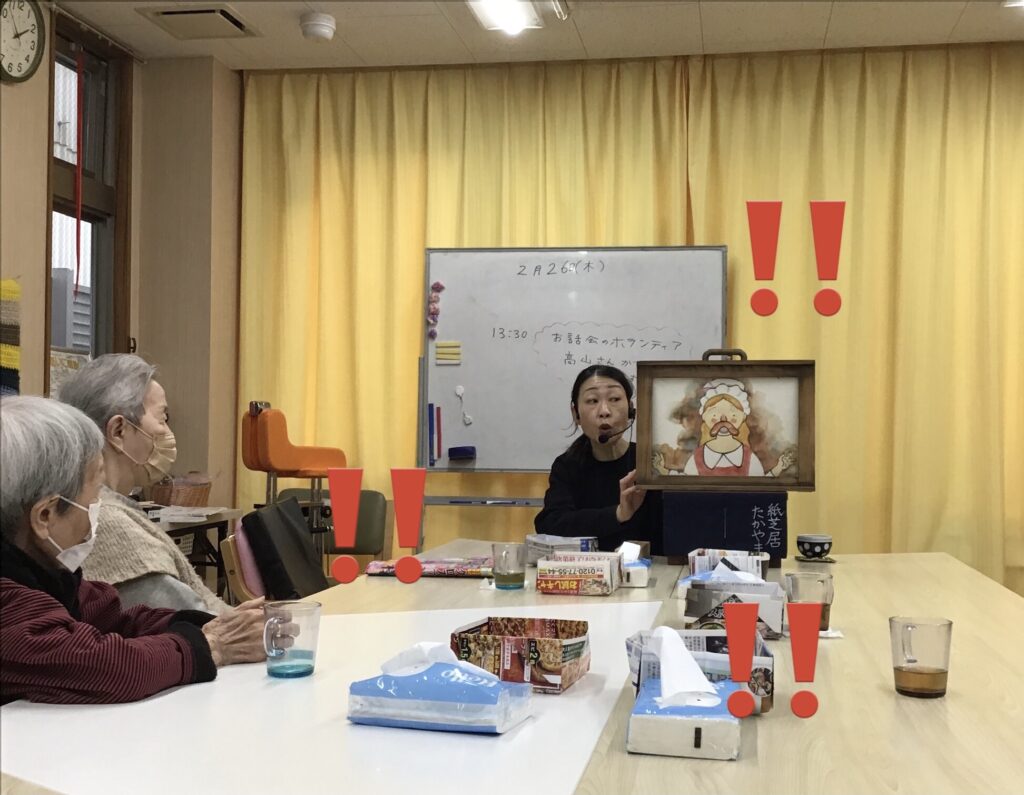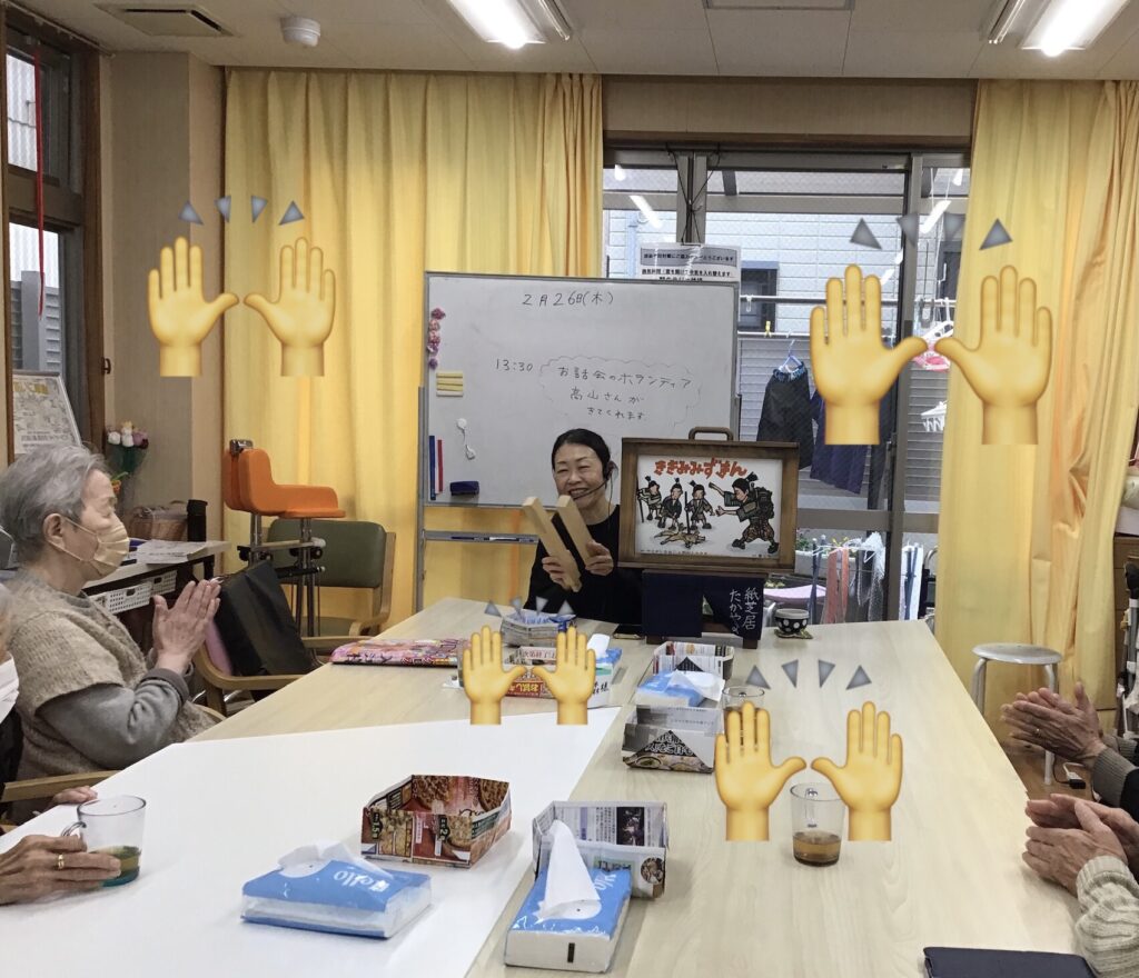 お話が終わった後も、利用者様の子供時代の紙芝居の話や紙芝居屋さんが持ってきていた駄菓子の値段の話になり、そこから腹薬の話にまで飛んで大盛り上がり🤩