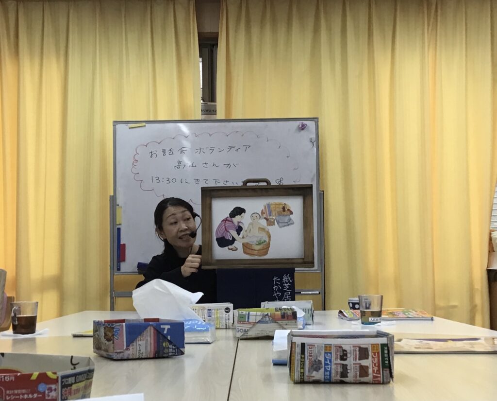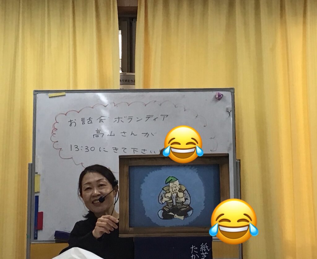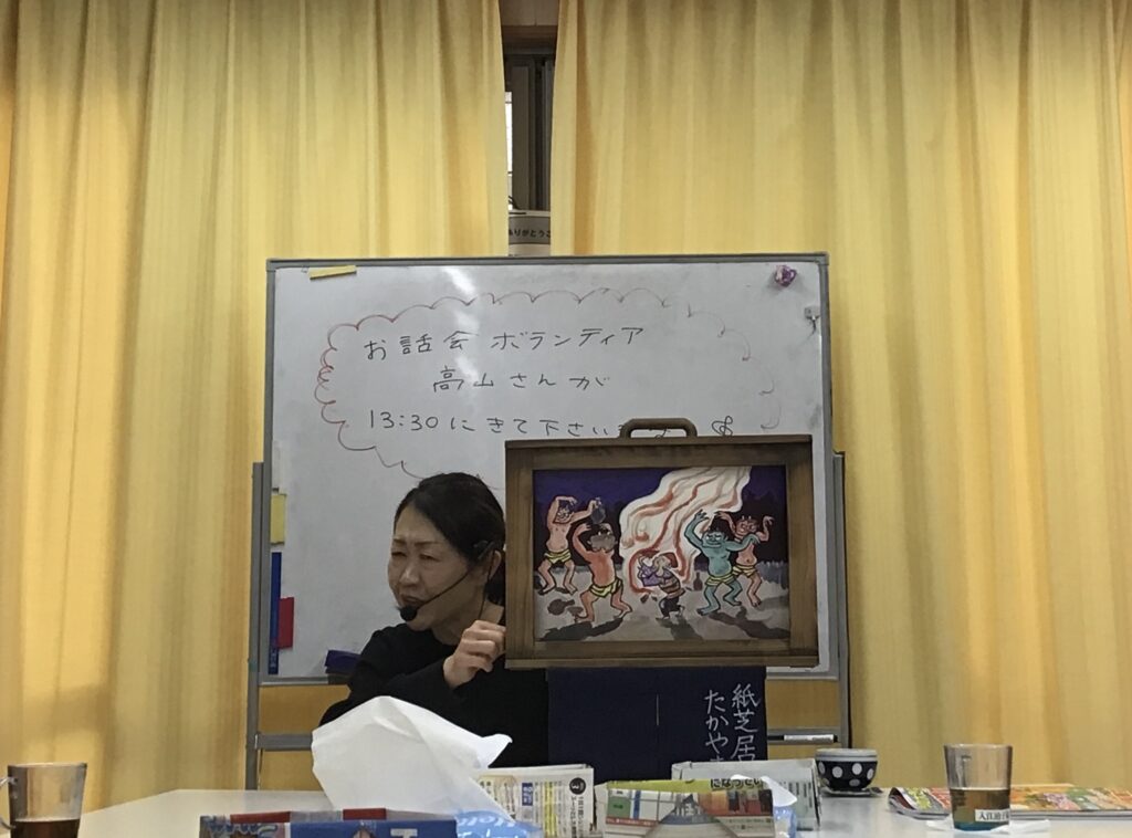暖かくなってきて気持ちの良い本日、ボランティアの高山さんが紙芝居を持ってきてくださいました!