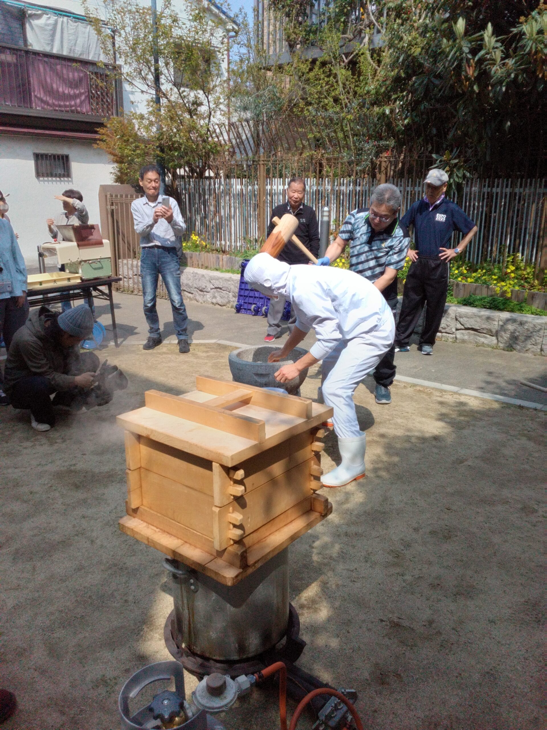 ちょうど数年前に植えられた桜の花🌸も見頃でお花見気分でぜんざいやつきたて餅を頂戴しました。